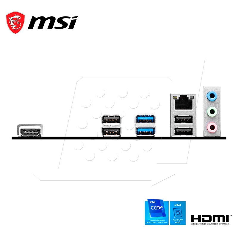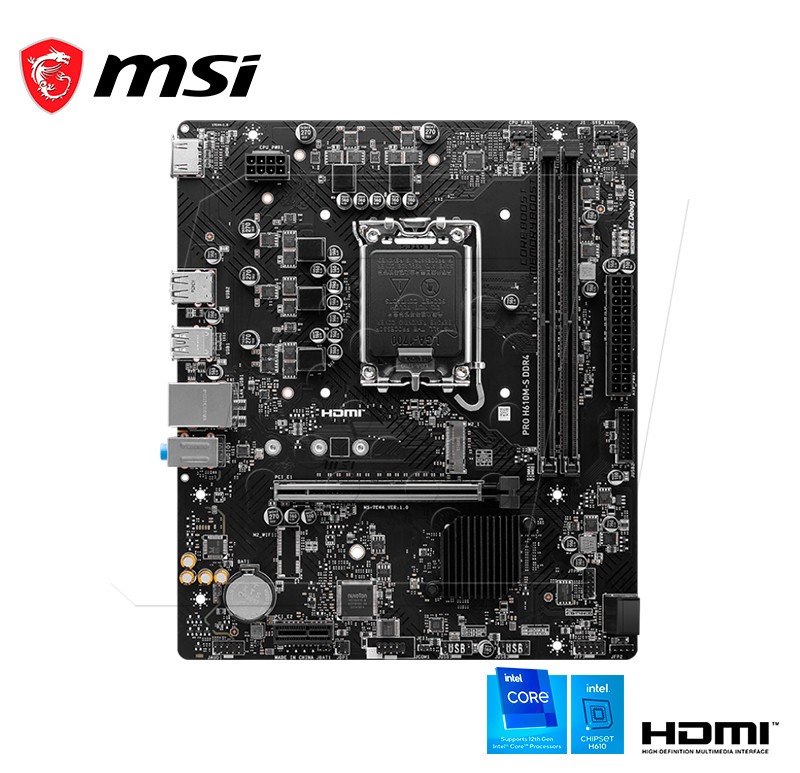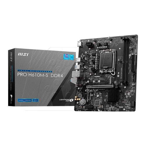 Mainboard PRO H610M-S DDR4 – LGA 1700, chipset Intel H610, hasta 64 GB DDR4, LAN Gigabit, varios puertos USB, formato mATX.