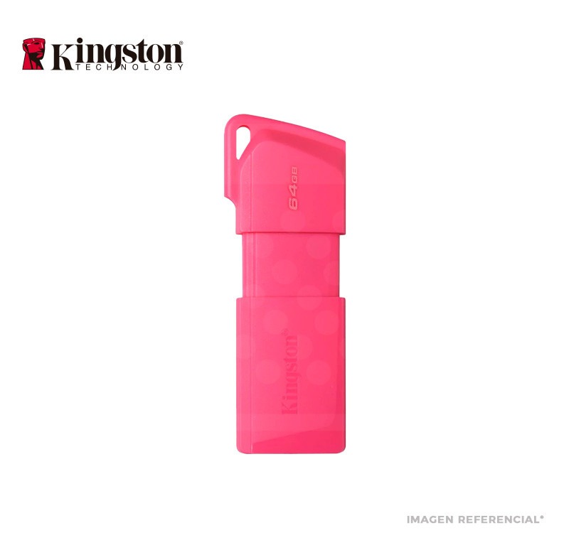 Memoria USB Kingston DataTraveler Exodia M 64GB, USB 3.2 Gen 1 Tipo-A, color neón rosado, compatible con Windows, macOS, Linux y Chrome OS, Temperatura de funcionamiento 0°C–60°C.